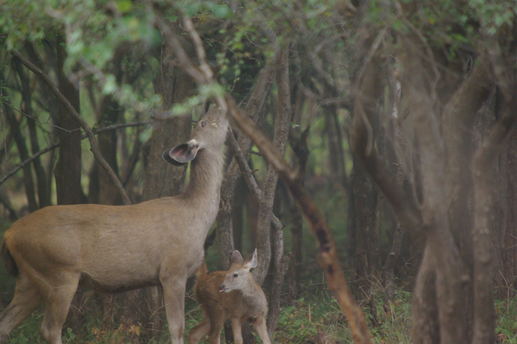 Sambar doe and fawn