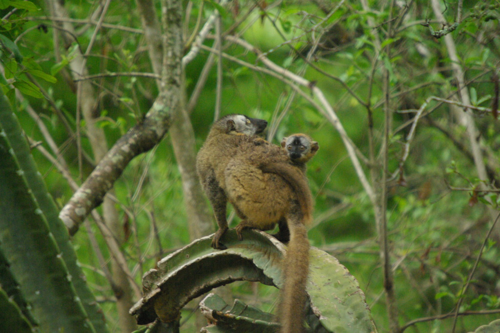 Red Fronted Brown Lemurs on cactus
