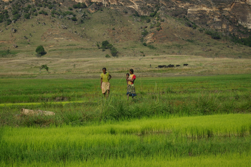 Locals tend to their rice paddies at the edge of the park