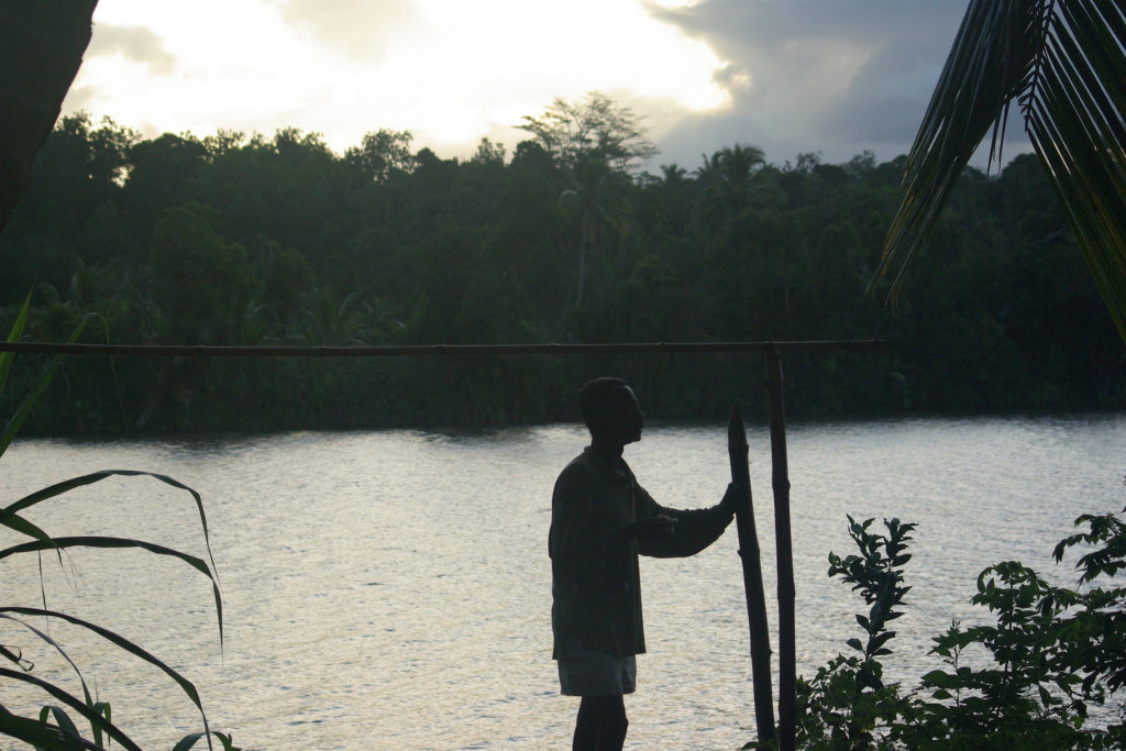 My guide at river's edge near at dusk: Aye-Aye Island