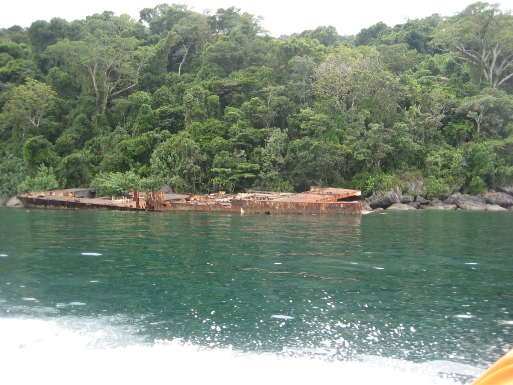 The Wreckage of cargo ship seen in the harbor on the boat ride to Masoala