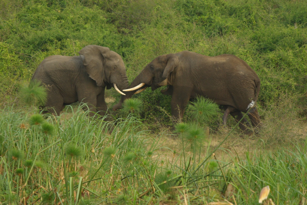 Mock battle between two elephants