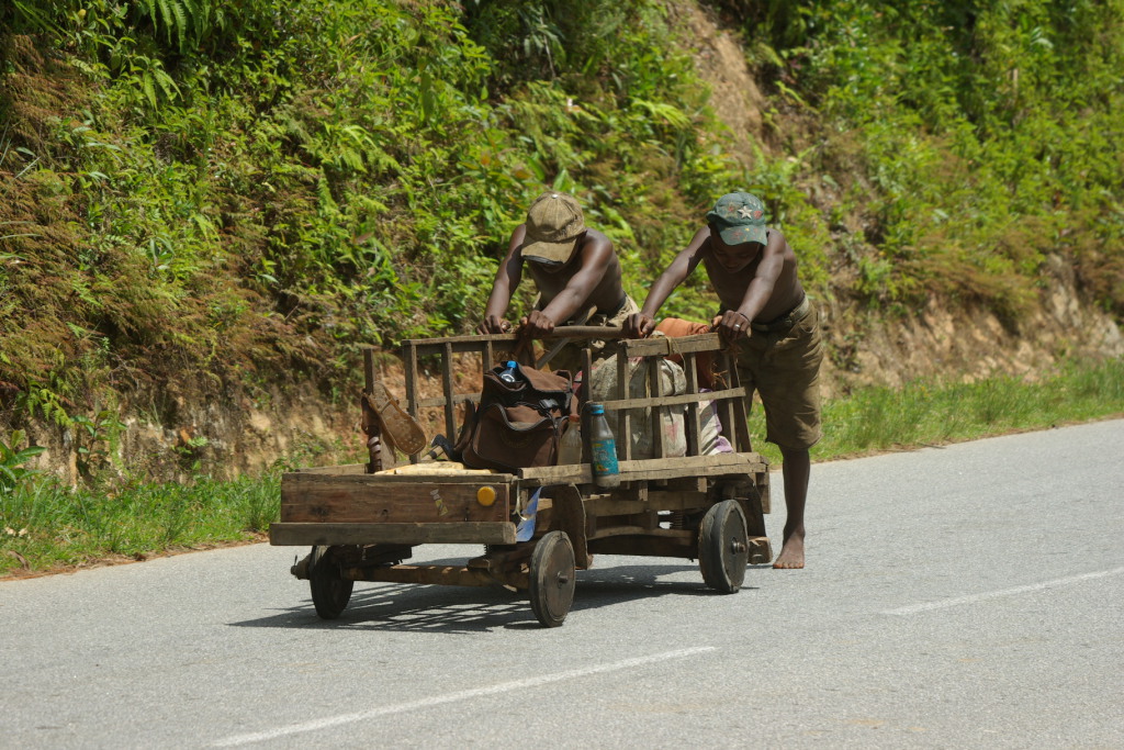 It's hard work pushing the cart uphill