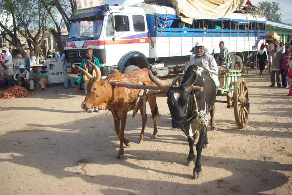 Zebu cart and th other taxi-brousse